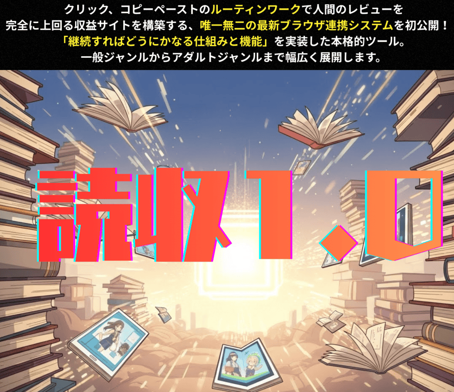 これまで数多くのAIツールを検証してきましたが、ここまで「初心者が稼ぐための最短経路」を構造化したシステムは他にありません。羽田さんのツールはどれもクオリティが高いですが、今回の「読収」は、最新機能を実装しており、そのポテンシャルは計り知れないものがあります。