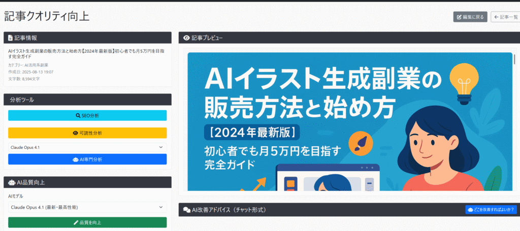 → 読みやすく、記憶に残るカラーリングと装飾で、滞在時間を底上げ。 - 記事生成フローの独自カスタマイズ