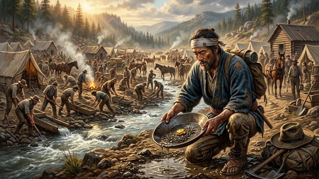 一攫千金を夢見て、世界中から約30万人もの人々が金鉱脈を目指して殺到しました。